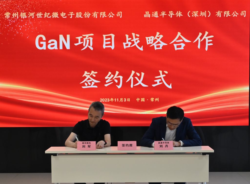 2023年11月3日上午,在上海聚源聚芯集成電路產業股權投資基金中心的見證下,我公司與晶通半導體(深圳)有限公司在常州舉行了GaN項目戰略合作簽約儀式。常州銀河世紀微電子股份有限公司董事長楊森茂、總經理劉軍及晶通半導體(深圳)有限公司總經理劉丹等人員出席簽約儀式。